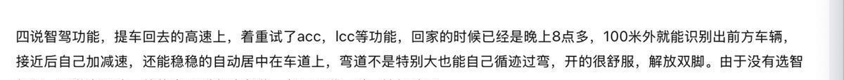 根据他的描述,除了空间很满足,对于零跑C16的智能驾驶辅助功能也很认可,100米开外就可以识别前方车辆,车道居中也可以稳稳保持,开的很舒服,可以解放双脚,即便买的是非激光雷达版本,这台零跑C16也可以满足他大部分关于驾驶辅助的场景需求了。